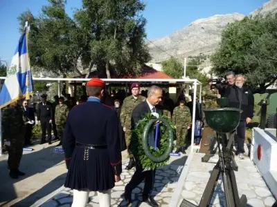 Στη συνέχεια επισκέφθηκε το 5/42 Σύνταγμα Ευζώνων «ΔΕΛΒΙΝΑΚΙ» στη ν. Κάλυμνο, όπου τελέστηκε η Απονομή του Απολεσθέντος Μεταλλίου Ταξιάρχη Αριστείου Ανδρείας στην Πολεμική Σημαία του Συντάγματος, από τον Αρχηγό του ΓΕΣ.