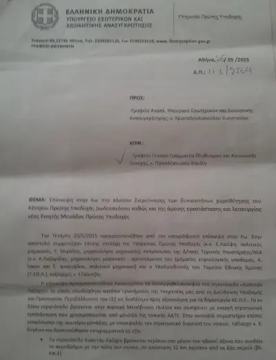 Δείτε το έγγραφο που φέρνει στη δημοσιότητα σήμερα το kosnews24.gr σύμφωνα με το οποίο στις 26/5/15 κλιμάκιο του Υπουργείου Εσωτερικών και Διοικητικής Ανασυγκρότησης επίσκεφθηκε την Κω για την αναζήτηση χώρου Πρώτης Υποδοχής των Μεταναστών.