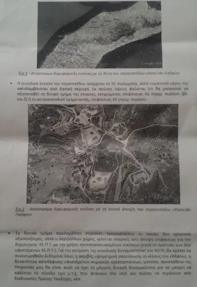 Ο χώρος όπως φαίνεται και στα έγγραφα ήταν το στατόπεδο ΚΑΠΕΤΑΝ ΛΑΖΑΡΗΣ που βρίσκεται στο Πυλί (συγκεκριμένα στην περιοχή Μεσόβουνο Πυλίου) το οποίο συνορεύει με ενεργή στρατιωτική μονάδα. Στην αυτοψία στην οποία συμμετείχαν και εκπρόσωποι της ανωτέρω μονάδας με επικεφαλής τον Ταξίαρχο κ. Κ. Ευγένιο διαπιστώθηκε ότι οι κτιριακές εγκαταστάσεις δεν είναι αξιοποιήσιμες (παρά μόνο ο περιβάλλων χώρος) ,και ότι θα πρέπει να διερευνηθει η δυνατότητα υδροδότησης του στρατοπέδου από δίκτυο του Πυλίου το οποίο όπως αναφέρεται στο έγγραφο δεν είναι πόσιμο.......