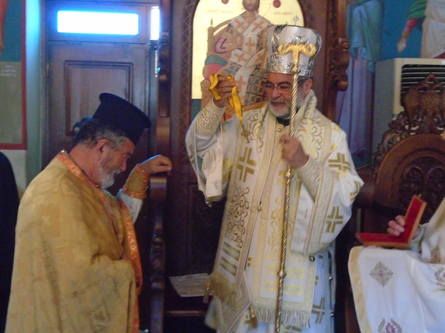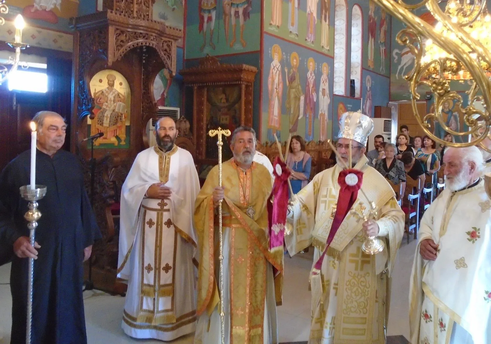 Ὁ Σεβασμιώτατος μετέφερε στοὺς συγκεντρωμένους πιστούς τίς εὐλογίες τοῦ Παναγιωτάτου Οἰκουμενικοῦ Πατριάρχου κ. κ. Βαρθολομαίου καί τόνισε τὴ σημασία τοῦ παραδείγματος τῶν Ἀποστόλων στὴ ζωή μας. Στὸ τέλος τῆς Θείας Λειτουργίας ἐπέδωσε στὸν Πρωτοπρ. Δημήτριο Μιχαλόπουλο, ἱερ. προϊστάμενο τῆς ἐνορίας Ἁγίων Ἀποστόλων Ἀντιμαχείας, τὸν Χρυσὸ Σταυρὸ τῆς ἐν Δωδεκανήσῳ Ἐκκλησίας γιὰ τὴν προσφορὰ καὶ τὸ ἔργο του.