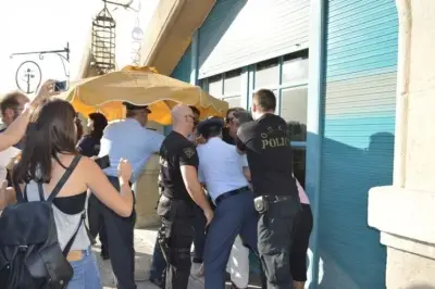 ΤΕΛΕΥΤΑΙΑ ΕΝΗΜΕΡΩΣΗ: Τελικά συνελήφθησαν (εν μέσω διαμαρτυριών των εργαζομένων αλλά και πολιτών που έσπευσαν για συμπαράσταση) και οι υπόλοιποι εργαζόμενοι (Μ. Πολίτου, Σ. Βλάχου, Ν. Γιαννάκος και Γ. Βενέρης) έτσι ώστε να αφεθούν και οι υπόλοιποι ελεύθεροι, ενώ πίσω στο κτίριο έμειναν πολίτες (ανάμσά τους και η επικεφαλής του Οράματος κ. Ρούφα) για να φυλάνε το κτίριο, ώστε να μην πανε οι υπάλληλοι για να μεταφέρουν τον εξοπλισμό.