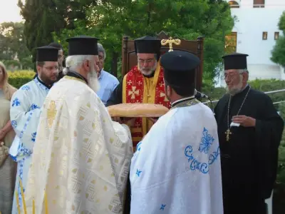 Στὸν Πανηγυρικὸ Ἑσπερινὸ καὶ στὴν Ἀκολουθία τῆς Ἀρτοκλασίας χοροστάτησε ὁ Σεβασμιώτατος Μητροπολίτης Κώου καὶ Νισύρου κ. Ναθαναήλ, ὁ ὁποῖος μετέφερε στοὺς προσκυνητὲς τὶς εὐχὲς καὶ τὶς εὐλογίες τοῦ Παναγιωτάτου Οἱκουμενικοῦ Πατριάρχου κ. κ. Βαρθολομαίου, ἀναφέρθηκε στὸν θαυμαστὸ βίο τοῦ Ἁγίου Φωκᾶ, ὁ ὁποῖος μαρτύρησε γιὰ τὴν πίστη τοῦ Χριστοῦ, καὶ τόνισε ὅτι ὅταν τὸν ἐπικαλούμαστε μὲ πίστη πάντοτε προστρέχει γιὰ νὰ μᾶς βοηθήσει.