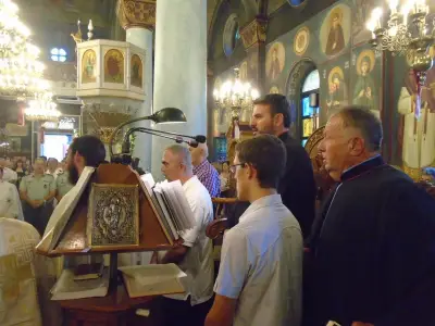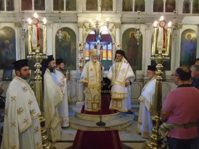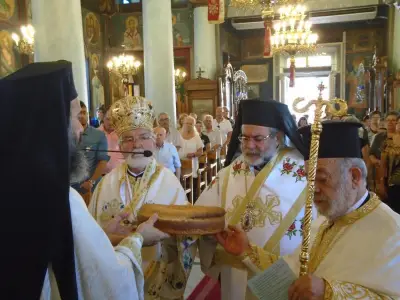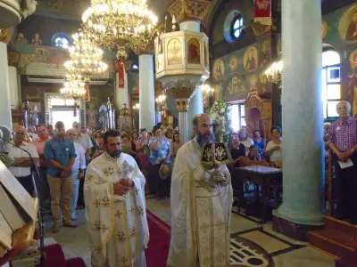 Κατὰ τὴν κυριώνυμο ἡμέρα, Κυριακὴ 26 Ἰουλίου, ἐψάλη ὁ Ὄρθρος καὶ τελέστηκε ἡ Θεία Λειτουργία συλλειτουργούντων τῶν Σεβασμιωτάτων Μητροπολιτῶν Ἑλβετίας κ. Ἱερεμία καὶ Κώου καὶ Νισύρου κ. Ναθαναήλ.