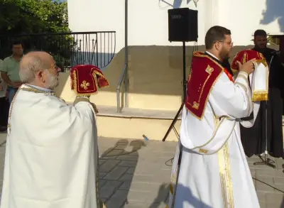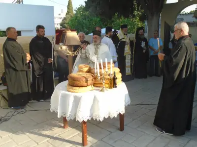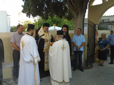 Χοροστάτησε ὁ Σεβασμιώτατος Μητροπολίτης Κώου καὶ Νισύρου κ. Ναθαναὴλ καὶ λειτούργησε ὁ Γενικὸς Ἀρχιερατικὸς Ἐπίτροπος τῆς Ἱερᾶς Μητροπόλεως Κώου καὶ Νισύρου Αἰδεσ. Πρωτ. π. Ἰωάννης Διακοπαναγιώτης.