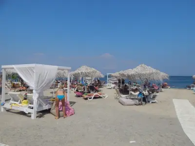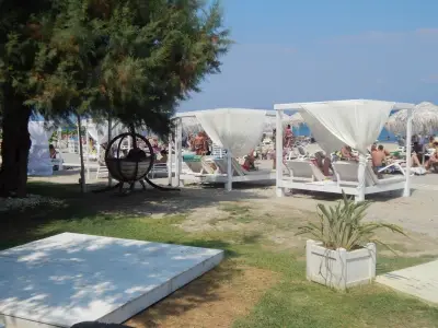Μπορεί κανείς να χαλαρώσει στις ξαπλώστρες και τα μοντέρνα πουφ του από νωρίς το πρωί με καφέδες, φυσικούς χυμούς, φρούτα, snacks κ φρέσκες σαλάτες, και πλησιάζοντας προς το μαγευτικό ηλιοβασίλεμα, να πάρουν θέση οι παγωμένες μπύρες και τα μοναδικά cocktails!