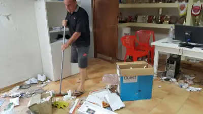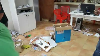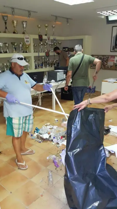 Σημαντικά έγγραφα βρίσκονται πεταμένα και σκισμένα στο πάτωμα, χαρτιά και μπουκάλια νερού βρίσκονται σχεδόν σε κάθε σημείο, ενώ φθορές έχουν προκληθεί τόσο στους εσωτερικούς χώρους του κτηρίου, όσο και σε αντικείμενα κι άλλα είδη.