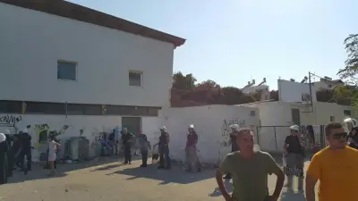 Έπειτα από τα επεισόδια που ξέσπασαν την Τρίτη στο δημοτικό γήπεδο, οι αστυνομικές δυνάμεις, μη μπορώντας να συγκρατήσουν το εξαγριωμένο πλήθος αναγκάστηκαν να αποχωρήσουν από το στάδιο, αφήνοντάς το στο έλεος των μεταναστών.