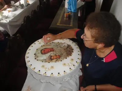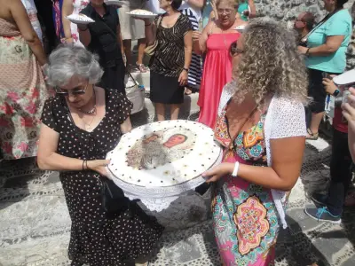 Μετά τό τέλος τοῦ Ἑσπερινοῦ ὁ Σεβασμιώτατος εὐλόγησε τήν λεγόμενη «ρεβυθάδα» τῆς Παναγιᾶς στήν τράπεζα τῆς Ἱερᾶς Μονῆς καί ἐν συνεχείᾳ, λίγο πρίν τά μεσάνυχτα, ἔψαλε μαζί μέ τόν Ἱερό κλῆρο, τίς «νιαμερίτισσες» καί τούς συγκεντρωμένους προσκυνητές τά ἐγκώμια καί τήν Ἀκολουθία τοῦ Ἐπιταφίου τῆς Θεομήτορος.