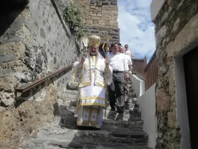 Τό ἀπόγευμα τῆς Παρασκευῆς 14 Αὐγούστου χοροστατοῦντος τοῦ Σεβασμιωτάτου Μητροπολίτου Κώου καί Νισύρου κ. Ναθαναήλ ἐτελέσθη ὑπό τοῦ Καθηγουμένου τῆς Ἱερᾶς Μονῆς Παναγίας Σπηλιανῆς, Πανοσ. Ἀρχιμ. π. Στεφάνου Καλλιστῆ, Ἀρχιερατικοῦ Ἐπιτρόπου Νισύρου, ὁ Μέγας Πανηγυρικὸς Ἑσπερινός.