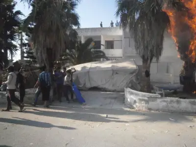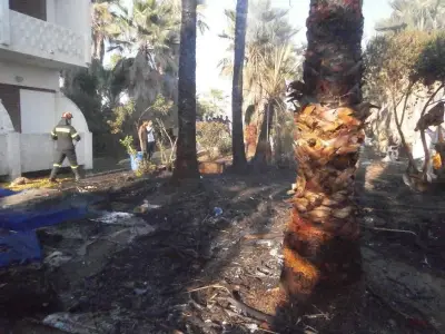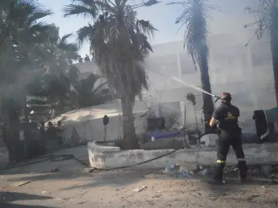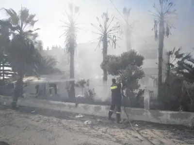 Ενημερώσαμε άμεσα την Αστυνομία και την Πυροσβεστική, που σε λίγα λεπτά κατέφτασαν, επεμβαίνοντας και προλαμβάνοντας την επέκταση της φωτιάς, που τελικά περιορίστηκε σε 5 φοινικόδεντρα και μερικές από τις αυτοσχέδιες σκηνές των ενοίκων, χωρίς να ακουμπήσει το κτήριο ή άλλα σημεία της αυλής.