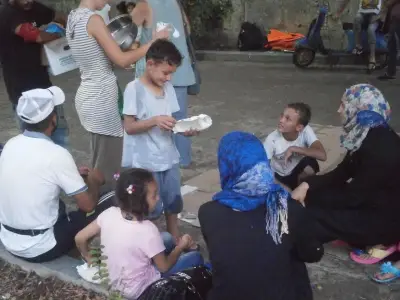 Η ΑΛΛΗΛΕΓΓΥΗ – ΚΩΣ εξακολουθεί να βρίσκεται καθημερινά δίπλα στους πρόσφυγες και τους μετανάστες στα πάρκα και στην παραλιακή οδό της πόλης, όπως και στο ΚΑΠΤΑΙΝ ΗΛΙΑΣ, φροντίζοντας κατά βάση, την κατά το δυνατό κάλυψη των αναγκών σίτισης, αφού εδώ και μήνες, κανένας επίσημος φορέας δεν έχει αναλάβει τη σίτισή τους (με μοναδική εξαίρεση τις 6 μέρες του Αυγούστου, όταν την ανέλαβε ο στρατός).