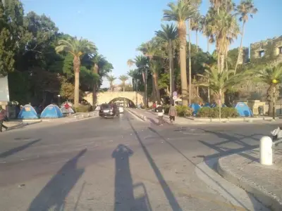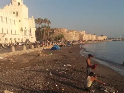 - Σήμερα 1η Σεπτέμβρη, η πρωτοχρονιά των Γεωργών και των Βυζαντινων. Είναι μέρα συνδεδεμένη με παραδόσεις που το τοπικό Λύκειο Ελληνίδων μας θυμίζει. Φέτος, λένε, ότι δεν θα γίνουν λογω των μεταναστών στο παραθαλάσσιο μέτωπο της πάλης. Νηνεμία χθες και μεγάλη άφιξη στο νησί μας. Η παραλιακή στο Λιμάνι, μπροστά από το επαρχείο, η αρχή της Λ. Φοινίκων και η Β. Γεωργίου γεμάτες σκηνές, ανθρώπους κατά γης, μικροί και μεγάλοι περπατούν πέρα δωθε, ασταμάτητα. Να είναι κοντά στην Αστυνομία από όπου περιμένουν να πάρουν το χαρτί αλλά και κοντά στο πλοίο! Ένα περιπολικό της αστυνομίας ξεκινά στις 7.00 το πρωί από το λιμάνι με σκοπό να ‘’καθαρίσει’’ τον δρόμο κάτω από το Κάστρο κατ’ εντολήν του Λιμεναρχείου. ‘’Φύγετε!’’, ‘’που να πάνε;’’ , ‘’δεν ξέρω, από εδώ πρέπει να φύγουν’’. Μετά από μισή ώρα, με την σιωπή των διερχομένων, την άδηλη συμπόνια τους και τα ηχηρά σχόλια: ‘’βρωμιάρηδες ξεκουμπιστείτε!’’, ‘’βόδια, έ! βόδια’’, το πλήθος των μεταναστών και το διώξιμο χωρίς διέξοδο, αποκαρδιώνει τους αστυνομικούς που φεύγουν. Στο ‘’κάπταιν ηλίας’’ αδιαχώρητο. Κριτική για την ‘’φιλοξενία’’ μας, μας έκαναν ελληνικοί και διεθνείς οργανισμοί.