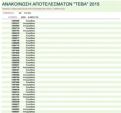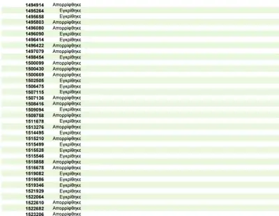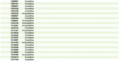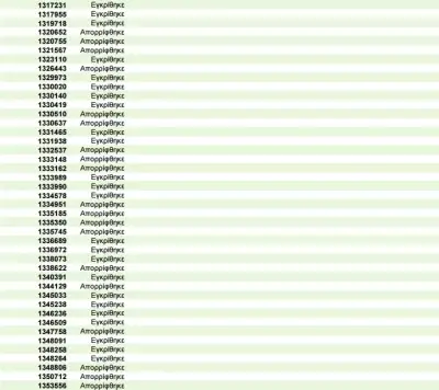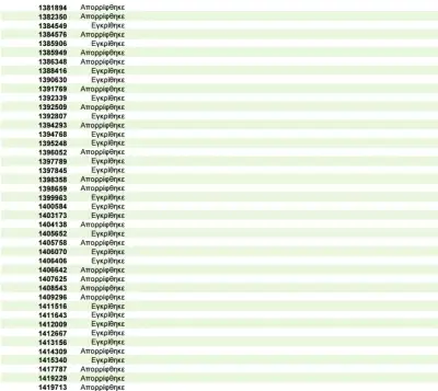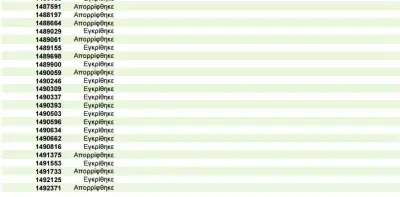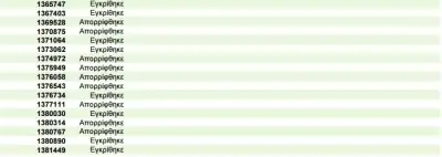 Η λίστα περιλαμβάνει τον αριθμό της αίτησης του ενδιαφερόμενου και το αποτέλεσμά της (εγκρίθηκε ή απορρίφθηκε).