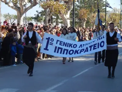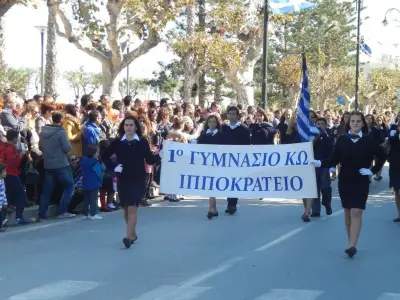 Δείτε φωτογραφίες από την Παρέλαση με επικεφαλής τη Φιλαρμονική του Δήμου Κω, του Ε.Ε.Σ Περιφερειακό Τμήμα Κω, των Εφεδροπολεμιστικών Οργανώσεων, των μαθητών της Δευτεροβάθμιας και Πρωτοβάθμιας Εκπαίδευσης, των Προσκόπων, των Οδηγών, του Παραρτήματος του Λυκείου Ελληνίδων Κω και την Ελληνική Ομάδα Διάσωσης.