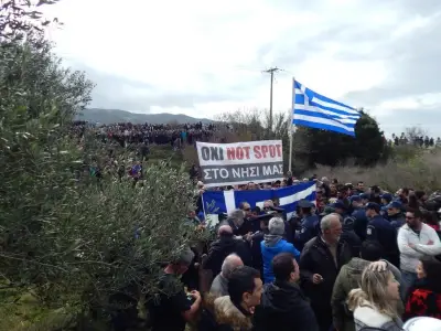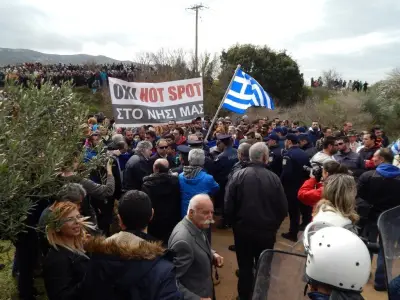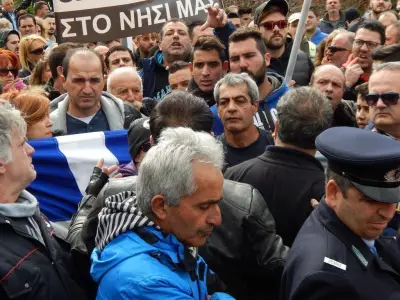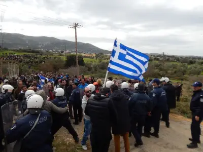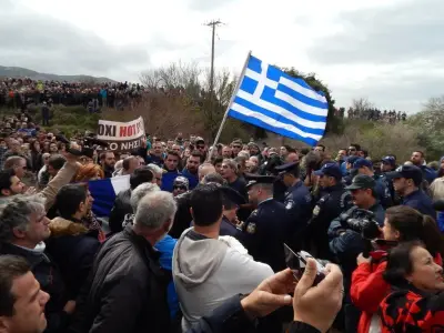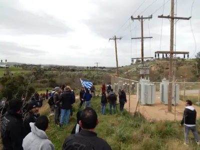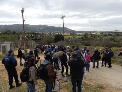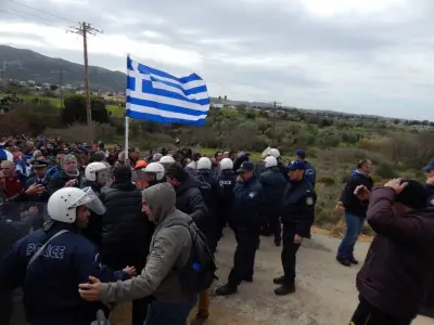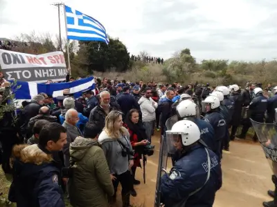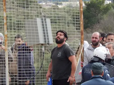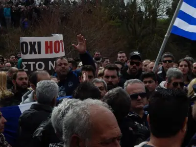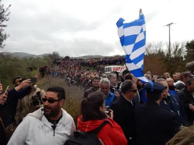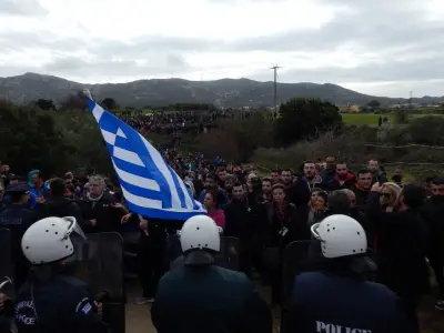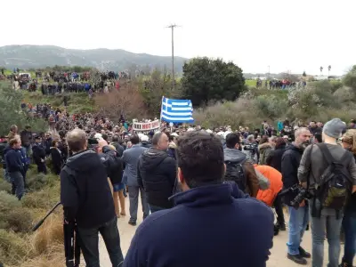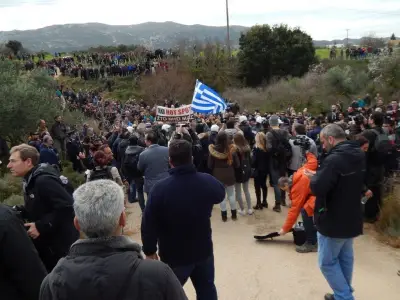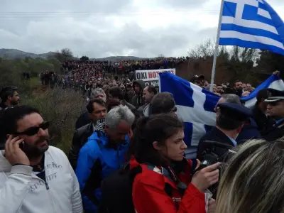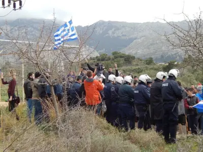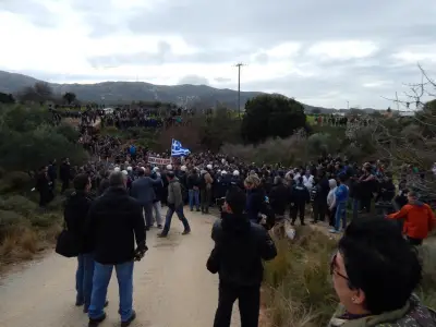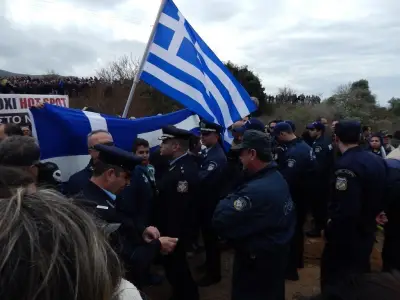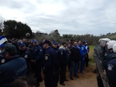 Το συγκεντρωμένο πλήθος ζήτησε να πάει στην είσοδο του στρατοπέδου κάτι που δεν επετράπει από την αστυνομία,με αποτέλεσμα αρχικά να υπάρξουν έντονες διαμαρτυρίες.