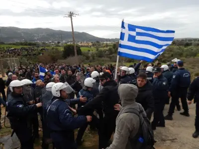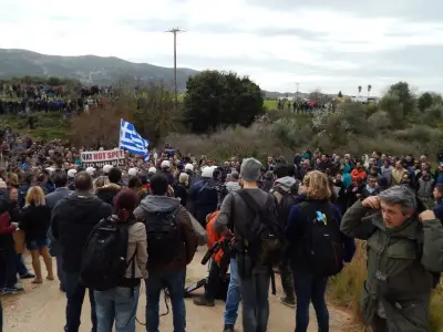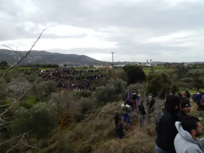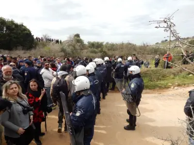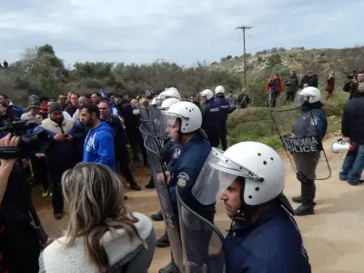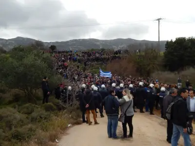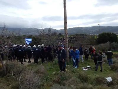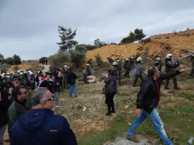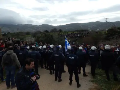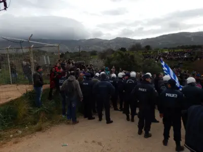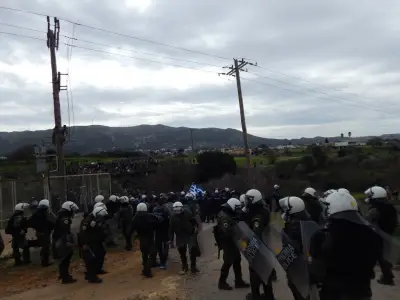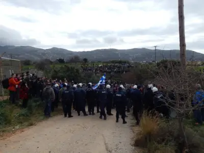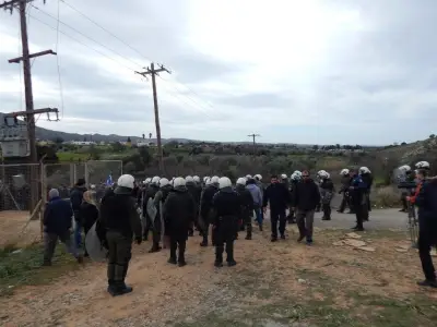 Μετά από λίγη ώρα ο κόσμος ζήτησε να αφήσουν 20 παιδιά και γυναίκες συμβολικά να πανε έξω από το στρατόπεδο αλλά ούτε αυτό έγινε δεκτό από την αστυνομία. Αργότερα το πλήθος κατάφερε να περάσει την πρώτη διμοιρία των ΜΑΤ αλλά οι υπόλοιπες διμοιρίες πέταξαν χημικά και δακρυγόνα έτσι ώστε να σταματήσουν τον κόσμο.