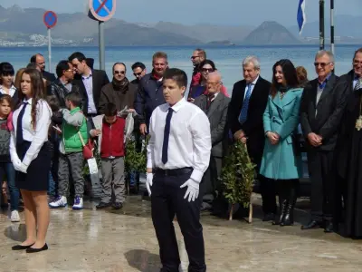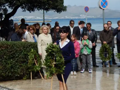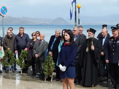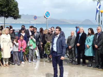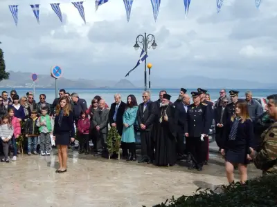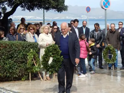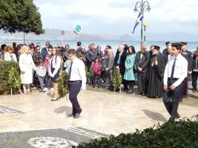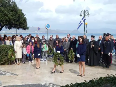 Κατάθεση στεφάνων από Μαθητές, Προσκόπους, Οδηγούς, Λύκειο Ελληνίδων, Ιδρύματα, Σωματεία, Συλλόγους της πόλης, παρουσία των Τοπικών Αρχών και των Εφεδροπολεμιστικών Οργανώσεων.