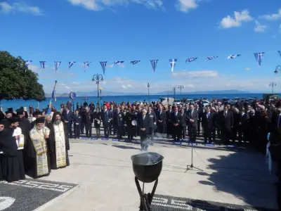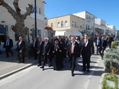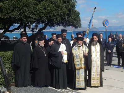 Τιμές κατά την κατάθεση στεφάνου,απέδωσαν άγημα της 80 ΑΔΤΕ και η Φιλαρμονική του Δήμου Κω.