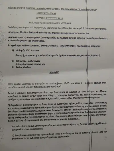 Σημαντική προσπάθεια για τη δημιουργία θερινού σχολείου ΦΥΣΙΚΗΣ - ΜΑΘΗΜΑΤΙΚΩΝ,στην Κω