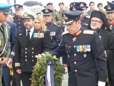 Τιμές κατά τις καταθέσεις στεφάνων απέδωσαν άγημα της 80 ΑΔΤΕ και η Φιλαρμονική του Δήμου Κω