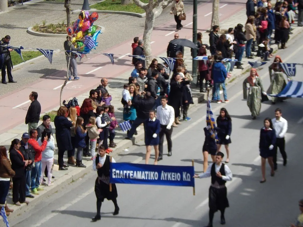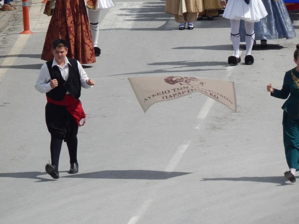 H Παρέλαση με επικεφαλής τη Φιλαρμονική του Δήμου Κω, των Εφεδροπολεμιστικών Οργανώσεων,του Ε.Ε.Σ Περιφερειακό Τμήμα Κω, των μαθητών της Δευτεροβάθμιας και Πρωτοβάθμιας Εκπαίδευσης, Προσκόπων, Οδηγών, του Παραρτήματος του Λυκείου Ελληνίδων και λοιπών Σωματείων .