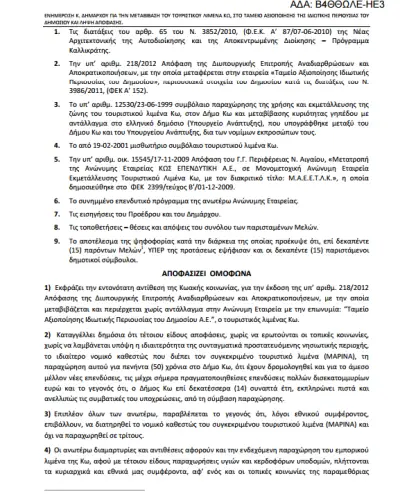 Στην σχετική απόφαση της 9ης Νοεμβρίου 2012 που έλαβε το Δ.Σ της Μαρίνας για άσκηση αναστολής και ακυρώσεως κατά της απόφασης υπαγωγής της Μαρίνας Κω στο ΤΑΙΠΕΔ ο κος Γερασκλής ως εκπρόσωπος της Δύναμης Αλλαγής ψήφισε ΟΧΙ. (επισυνάπτεται)