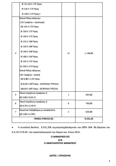 18 Απριλίου 2016: Απόφαση Δημάρχου για την προμήθεια κουρτινών ύψους 10.000 Ευρώ.