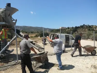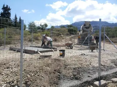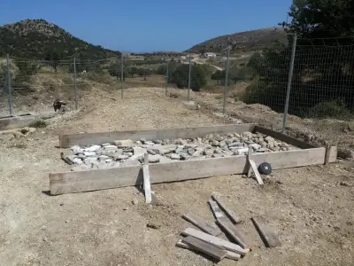 -κατασκευή περίφραξης ( πάκτωση σιδηροϊστών & τοποθέτηση συρματοπλέγματος περίφραξης