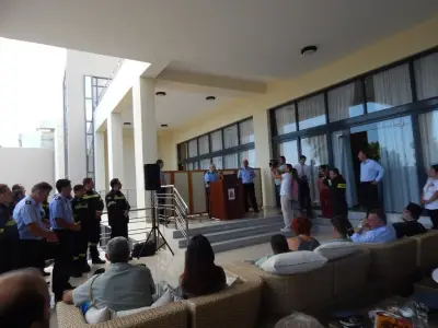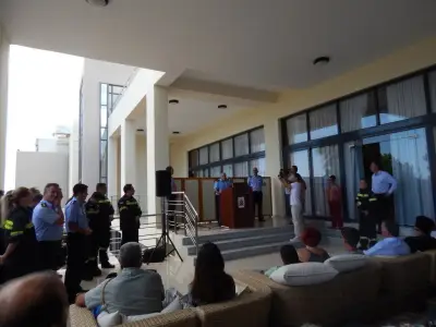 Στην τελετή παράδοσης- παραλαβής, που πραγματοποιήθηκε στο ξενοδοχείο "Πανόραμα"του κ. Κυπριώτη, παρευρέθηκαν:ο Σεβασμιώτατος Μητροπολίτης Κώου και Νισύρου κ.κ Ναθαναήλ, ο Δήμαρχος Κω Γ. Κυρίτσης, ο Διοικητής του ΝΑΣ ΚΩ Γιάννης Καρδαράς, ο Αστυνομικός Διευθυντής Γεωργακάκος, εκπρόσωπος της Ταξιαρχίας,δημοτικοί και περιφερειακοί σύμβουλοι, η Υπολιμενάρχης Τάνια Πρέκα, η Ελληνική Ομάδα Διάσωσης και πολλοί Κώοι αφού ο κ.Τσιάμης στα είκοσι χρόνια που υπηρέτησε στο νησί μας κατέκτησε το σεβασμό των Κώων και απέκτησε πολλούς και καλούς φίλους.