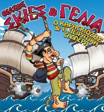 Υπόθεση: Ο Θίασος Σκιές και Γέλια παρουσιάζει την παράσταση "Ο Καραγκιόζης και η Πειρατική Γαλέρα". Μια μοναδική περιπέτεια η οποία είναι δημιουργία του καραγκιοζοπαίχτη Μιχάλη Θεοδωρόπουλου βασισμένη πάντα στο Παραδοσιακό Θέατρο Σκιών και στο απαράμιλλο χιούμορ του ξυπόλυτου ήρωά μας. Στην ιστορία μας ο Καραγκιόζης εργάζεται ως υπηρέτης στο σπίτι ενός μεγάλου και πλούσιου εμπόρου ο οποίος είχε παλιούς ανοιχτούς λογαριασμούς με πειρατές. Ένα βράδυ δέχεται επίθεση στο σπίτι του και ο Καραγκιόζης προσπαθώντας να τον υπερασπιστεί καταλήγει αιχμάλωτος και μπλέκει σε περιπέτειες... που θα έχουν ένα απίστευτο τέλος!