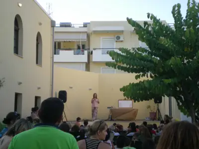 Την πρώτη ημέρα οι «Μικροί Καραγκιοζοπαίκτες», Πανορμίτης Κώστογλου και Γιάννης Καλούδης δημιούργησαν μια ολόκληρη παράσταση με τις ιστορίες του αγαπημένου όλων Καραγκιόζη και της παρέας του από το θέατρο σκιών. Με τη σοβαρότητα επαγγελματία, ετοίμασαν την ιστορία, τους διαλόγους και μιμήθηκαν τέλεια τη φωνή κάθε ήρωα, διασκεδάζοντας μικρούς και μεγάλους και προκαλώντας μεγάλη εντύπωση .