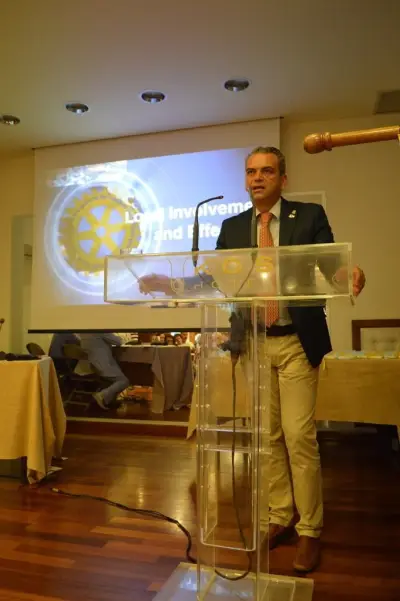 Πριν από οτιδήποτε άλλο, αλλά χωρίς να επεκταθώ, επιτρέψτε μου να κάνω μια πολύσύντομη αναφορά ενημερωτικού χαρακτήρα στο Ρόταρυ και το έργο του:Το Ρόταρυ αποτελεί μία παγκόσμια οργάνωση ανδρών και γυναικών, διαφόρων επαγγελμάτων και απασχολήσεων, οι οποίοι θεωρούν το ιδεώδες του υπηρετείν,τόσο ατομικά όσο και συλλογικά, ως θεμέλιο της επιτυχίας και της ευτυχίας στηνεπαγγελματική, οικογενειακή και κοινωνική τους ζωή.
