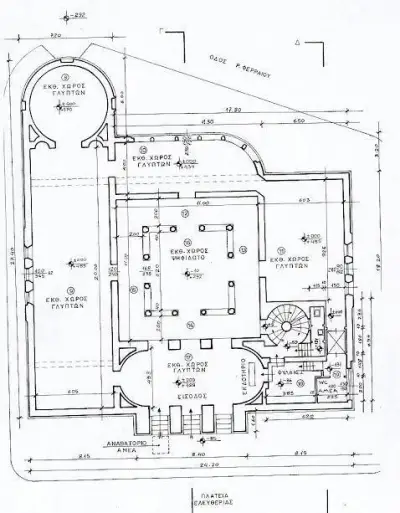 Με την μελέτη προτάθηκε λοιπόν στο κενό που υφίσταται στα όρια του εσωτερικού περιγράμματος του στεγασμένου αιθρίου να διαμορφωθεί μία νέα αίθουσα στην στάθμη του 1ου ορόφου, με επιφάνεια ίδια με αυτή του αιθρίου.