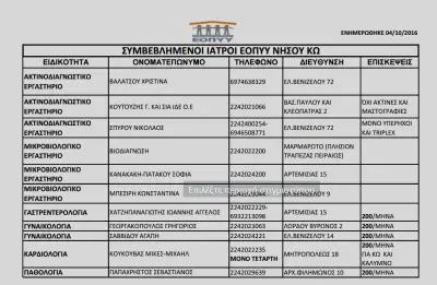 Οι Συμβεβλημένοι Ιατροί ΕΟΠΥΥ στην ΚΩ. Δείτε τη λίστα