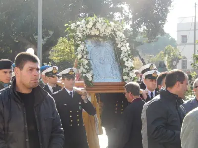 Μετά το πέρας της δοξολογίας ακολούθησε η Λιτάνευση της εικόνας του Πολιούχου της Κω, με την Φιλαρμονική του Δήμου Κω να προπορεύεται με τον μαέστρο Θανάση Πουλιού.