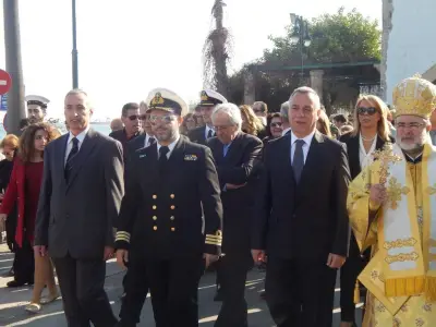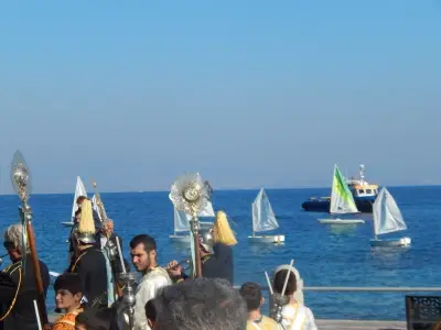 Χαρακτηριστική ήταν και φέτος η στιγμή που σφύριζαν τα πλοία όταν έφθασε η εικόνα στο λιμάνι.