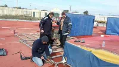 Σύμφωνα με τον υπεύθυνο του γηπέδου κ. Στέργο Χατζηστέργο, ανεμοστρόβιλος ο οποίος χτύπησε το στάδιο ήταν η αιτία να ξεριζωθεί το πακτωμένο στρώμα του ύψους.