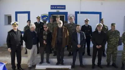 Η φρουρά στο Φαρμακονήσι χάρισε στον Υπουργό Ναυτιλίας και Νησιωτικής Πολιτικής, Παναγιώτη Κουρουμπλή τη σημαία που κυμάτιζε στον ιστό του νησιού, μοναδικοί κάτοικοι του οποίου είναι οι στρατιώτες και το κλιμάκιο των Ειδικών Δυνάμεων του Λιμενικού Σώματος Ελληνικής Ακτοφυλακής, που φρουρούν το ακριτικό νησί.