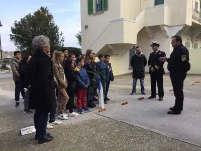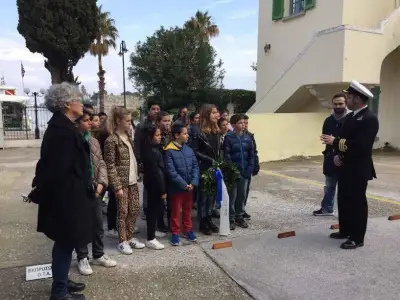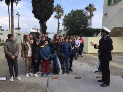 Τους μαθητές και τους δασκάλους υποδέχτηκαν ο διοικητής του Ναυτικού Σταθμού Κω Πλωτάρχης Ιωάννης Καρδαράς και στελέχη του πολεμικού ναυτικού, τους μίλησαν για τη σημασία της θυσίας των ηρώων της πατρίδας μας και γιατί οφείλουμε να τους τιμούμε και να τους θυμόμαστε.