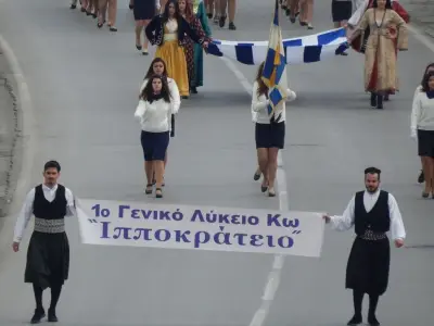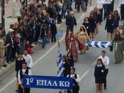 Δείτε φωτογραφίες από την Παρέλαση με επικεφαλής τη Φιλαρμονική του Δήμου Κω, των Εφεδροπολεμιστικών Οργανώσεων, του Ε.Ε.Σ. Περιφερειακό Τμήμα Κω, μαθητών της Δευτεροβάθμιας και Πρωτοβάθμιας Εκπαίδευσης πόλης και χωρίων, Προσκόπων, Οδηγών, του παραρτήματος του Λυκείου Ελληνίδων και λοιπών σωματείων.