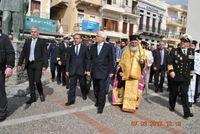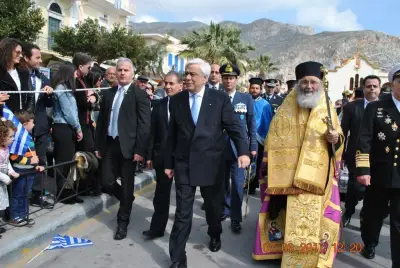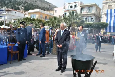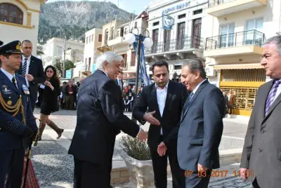 Στην αντιφώνησή του, ο Πρόεδρος της Δημοκρατίας αναφέρθηκε επί μακρόν στην ιστορία της Καλύμνου και τον πατριωτισμό που επέδειξαν και επιδεικνύουν οι κάτοικοι του νησιού, ενώ για την Ενσωμάτωση της Δωδεκανήσου παρέπεμψε στη Συνθήκη των Παρισίων, από την οποία είναι ξεκάθαρη η κυριαρχία της Ελλάδας στα Δωδεκάνησα και στις παρακείμενες νησίδες, ανεξαρτήτου μεγέθους και ανεξαρτήτως εάν είναι κατοικημένες ή όχι.