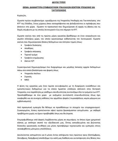 Δείτε παρακάτω το δελτίο τύπου των υπαλλήλων αλλά και το υπόμνημα διαμαρτυρίας