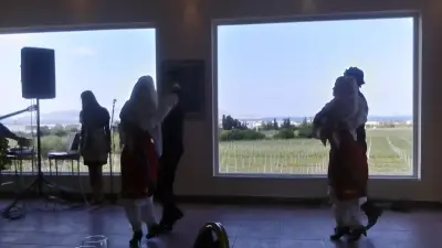 Μετά τη ξενάγηση στους χώρους του Οινοποιείου Τριανταφυλλοπούλου ακολούθησε γεύμα στον ίδιο χώρο με παρουσίαση παραδοσιακών χορών από τη Σχολή Χορού του κ. Γιάννη Πετούση.