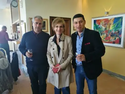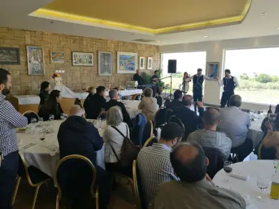 Στο γεύμα παραβρέθηκαν η Πρόεδρος της Ένωσης Οινοποιών Αμπελουργών Ν. Αιγαίου κα. Μαίρη Τριανταφυλλοπούλου, ο Πρόεδρος του Εμπορικού Τμήματος του ΕΒΕΔ κ. Στέργος Γιαλλίζης και ο Αναπληρωτής Πρόεδρος του Τουριστικού Τμήματος του ΕΒΕΔ κ. Δημήτριος Σαράντης.