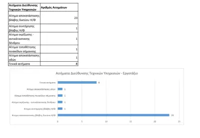 35 αιτήματα αφορούν στη Διεύθυνση Τεχνικών Υπηρεσιών και το Εργοτάξιο, 17 τις κοινότητες και 1 τις διοικητικές υπηρεσίες.