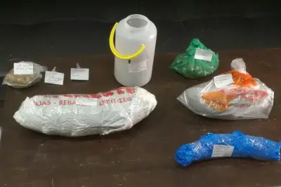 Επιπλέον, έγινε έρευνα σε αγροτεμάχιο που χρησιμοποιούσε ο δράστης και διαπιστώθηκε ότι, είχε αναπτύξει καλλιέργεια φυτών κάνναβης αποτελούμενη από έξι δενδρύλλια ύψους έως 1,30 μέτρα. Παράλληλα, εντοπίσθηκε μέσα σε αποθήκη του κτήματος ποσότητα ακατέργαστης κάνναβης βάρους -27- γραμμαρίων τοποθετημένη σε διάφορες συσκευασίες.