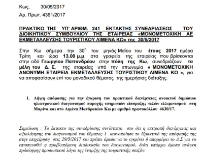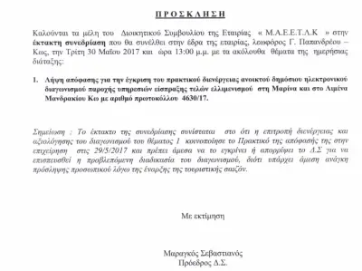 Δείτε πως στοιχειοθετεί ο πρόεδρος της ΜΑΕΕΤΛΚ το κατεπείγον της συνεδρίασης που αφορά στην κατακύρωση διαγωνισμού για παροχή υπηρεσιών είσπραξης τελών ελλιμενισμού σκαφών!