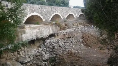 Διαπιστώθηκε ότι η συγκεκριμένη γέφυρα, που η κατασκευή της ανάγεται στην περίοδο της ιταλοκρατίας, είχε υποστεί ανασκαφή της θεμελιωσής του από το νερό με αποτέλεσμα όχι μόνο να κινδυνεύει αλλά και να εγκυμονούνται ευρύτεροι κίνδυνοι.