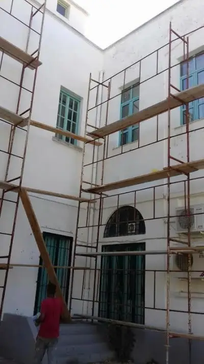 -Καθαίρεση των σαθρών επιχρισμάτων στις εξωτερικές επιφάνειες των τοιχοποιιών και ανακατασκευή τους.