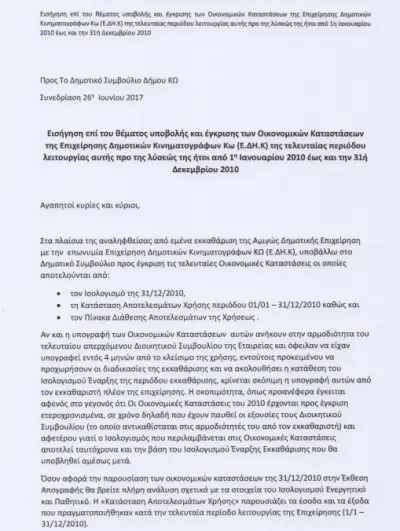 - Κοινοποιούμε την έκθεση - συμπεράσματα της εκκαθαρίστριας για τον Ισολογισμού της ΕΔΗΚ κατά το τελευταίο καταστροφικό έτος της πρώτης θητείας του κου Κυρίτση. (Αμφισβητεί ο κος Κυρίτσης τα στοιχεία του Ισολογισμού που αποδεικνύουν με πόσες χιλιάδες ευρώ χρέη φόρτωσε τον Κωακό λαό;)